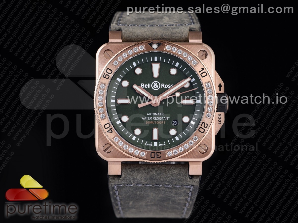 OXF 벨앤로스 다이버 BR 03-92 로즈골드 그린다이얼 다이아베젤 그린가죽스트랩 BR 03-92 Diver RG OXF 1:1 Best Edition Green Dial Diamond Bezel on Green Asso Strap MIYOTA 9015 (Free Nylon Strap) > 벨앤로스(BELL & ROSS)