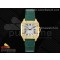 3KF 까르띠에 산토스 미듐 옐로우골드 다이아베젤 화이트다이얼 그린가죽스트랩 Santos de Cartier 35mm YG 3KF 1:1 Best Edition White Dial Diamonds Bezel on Green Leather Strap MIYOTA 9015