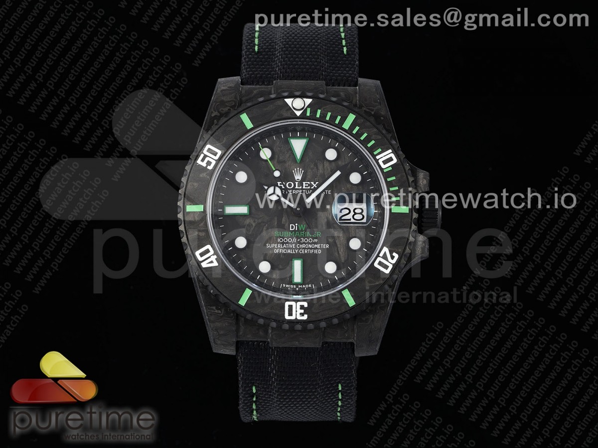 (NEW) VSF 롤렉스 서브마리너 DIW카본 블랙/그린다이얼 블랙나일론스트랩 Submariner DIW Carbon VSF 1:1 Best Edition Black/Green Dial on Black Nylon Strap VS3135