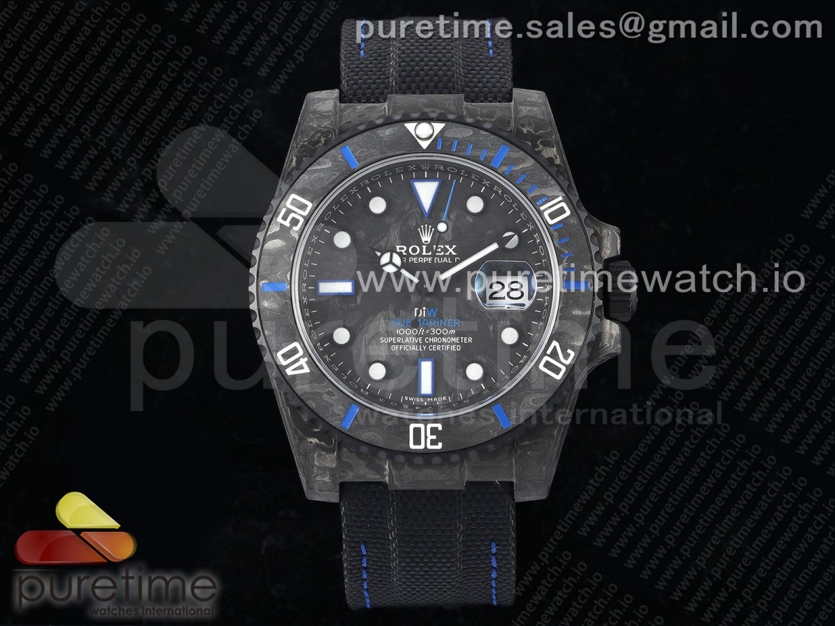 (NEW) VSF 롤렉스 서브마리너 DIW카본 블랙/블루다이얼 블랙나일론스트랩 Submariner DIW Carbon VSF 1:1 Best Edition Black/Blue Dial on Black Nylon Strap VS3135
