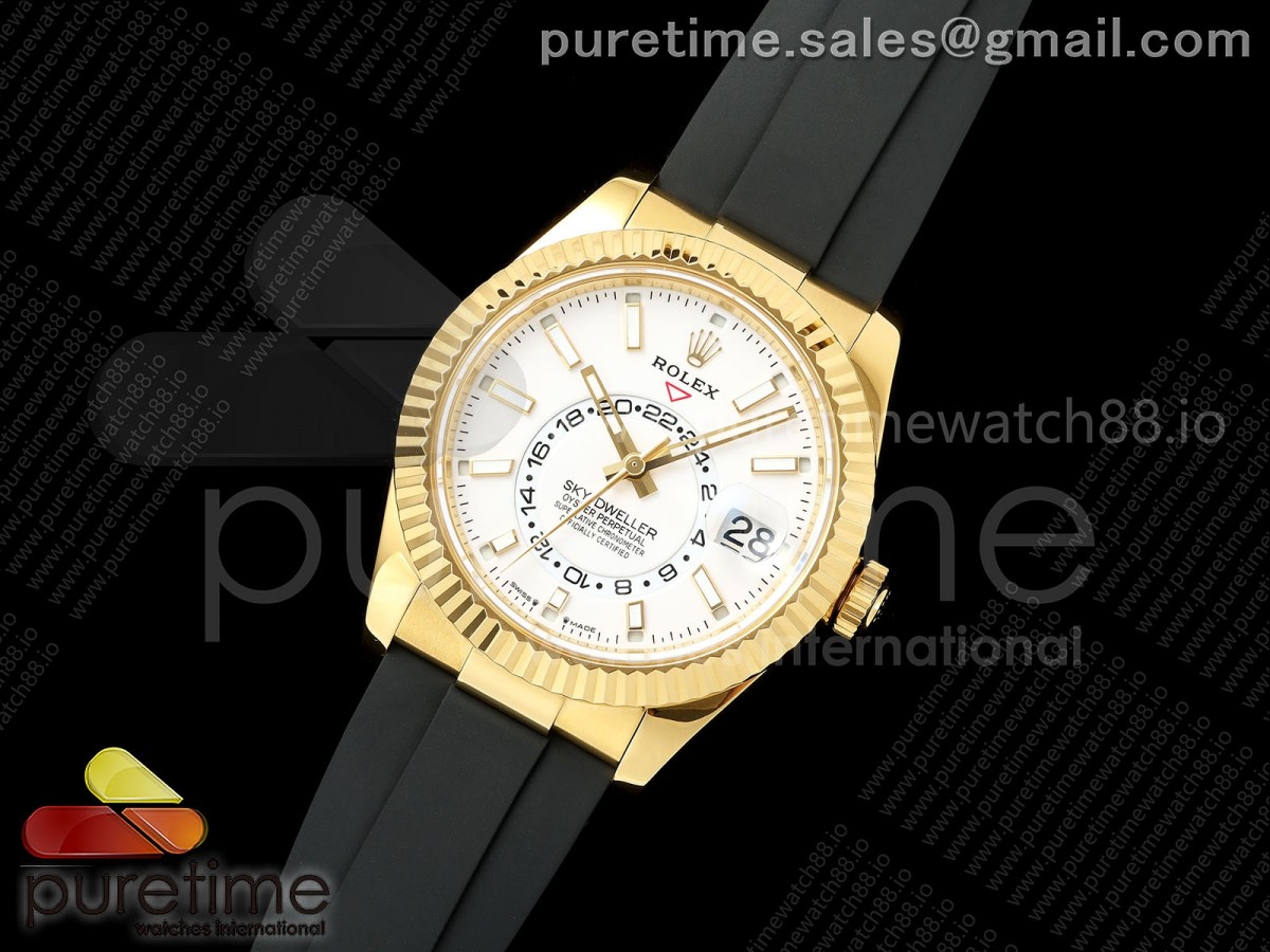ZF 롤렉스 스카이드웰러 텅스텐(Cu-W) 옐로우골드 화이트다이얼 블랙러버스트랩 Sky-Dweller 336238 YG ZF 1:1 Best Edition White Dial on Oysterflex Strap A23J (Gain Weight)