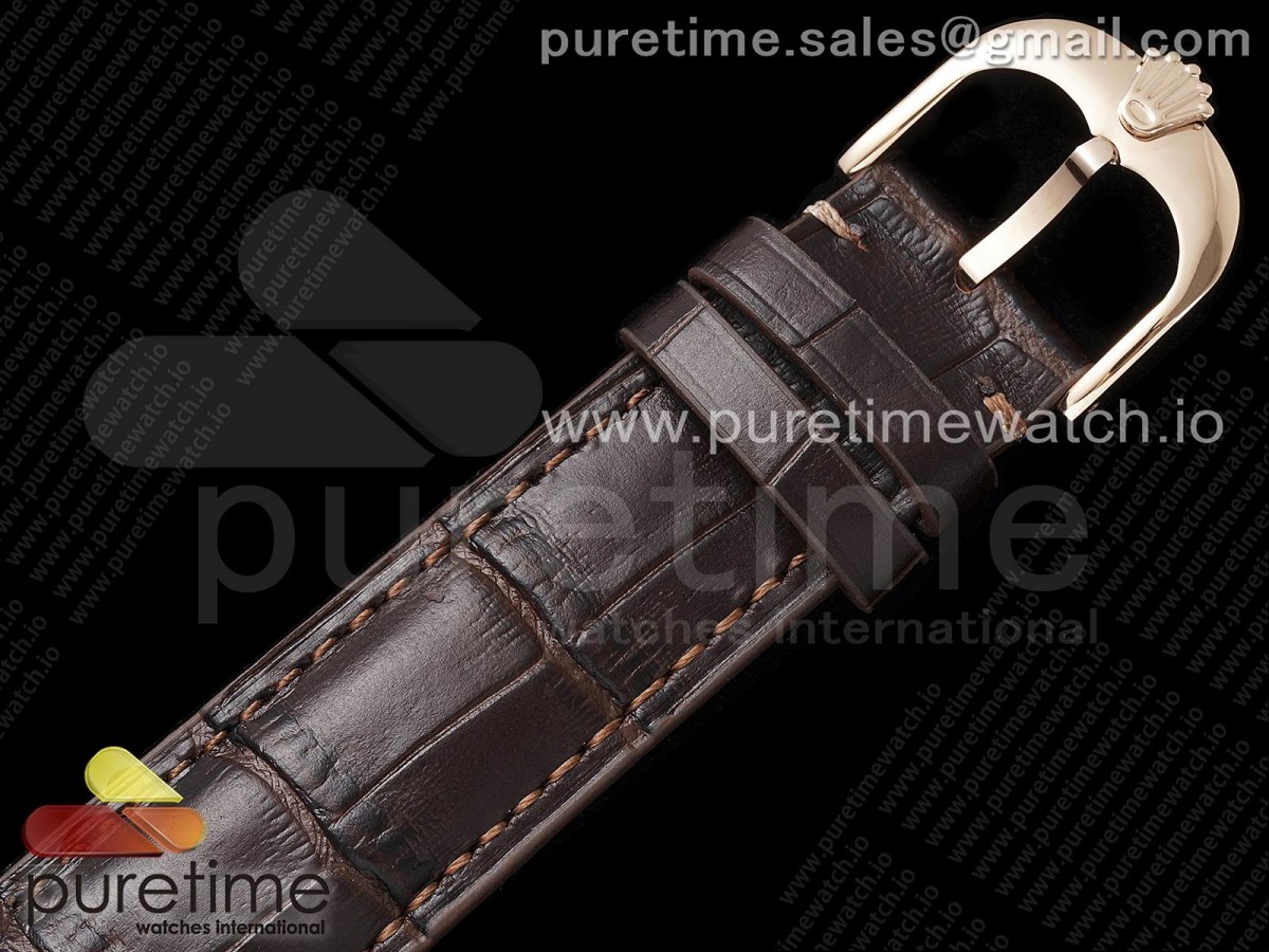 KZF 롤렉스 셀리니 듀얼타임 로즈골드 화이트다이얼 브라운가죽스트랩 Cellini Dual Time 50529 RG KZF Best Edition White Dial on Brown Leather Strap A23J