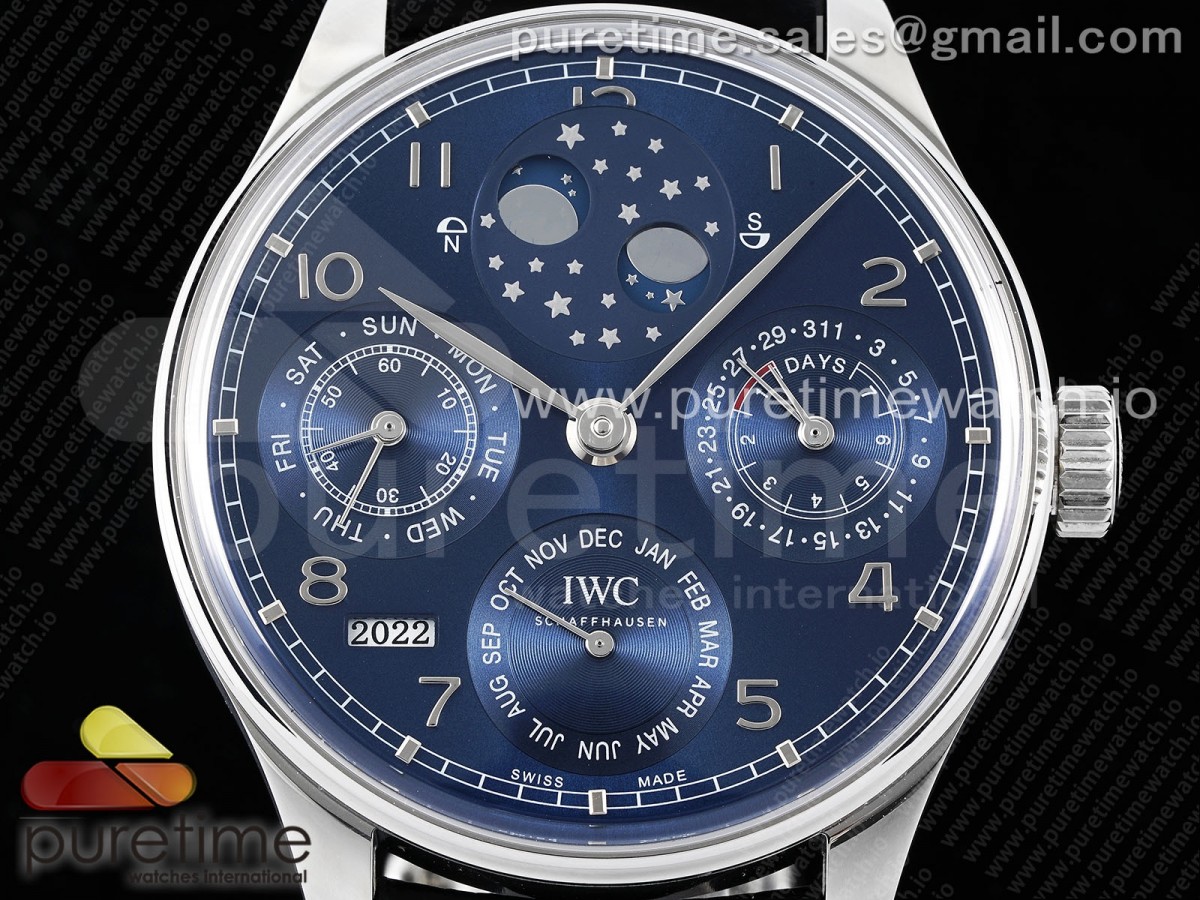 APSF IWC 포르투기저 퍼페츄얼캘린더 블루다이얼 블랙가죽스트랩 Portugieser Perpetual Calendar SS 5033 APSF 1:1 Best Edition Blue Dial on Black Leather Strap A52610 Clone > 아이더블류씨(IWC)