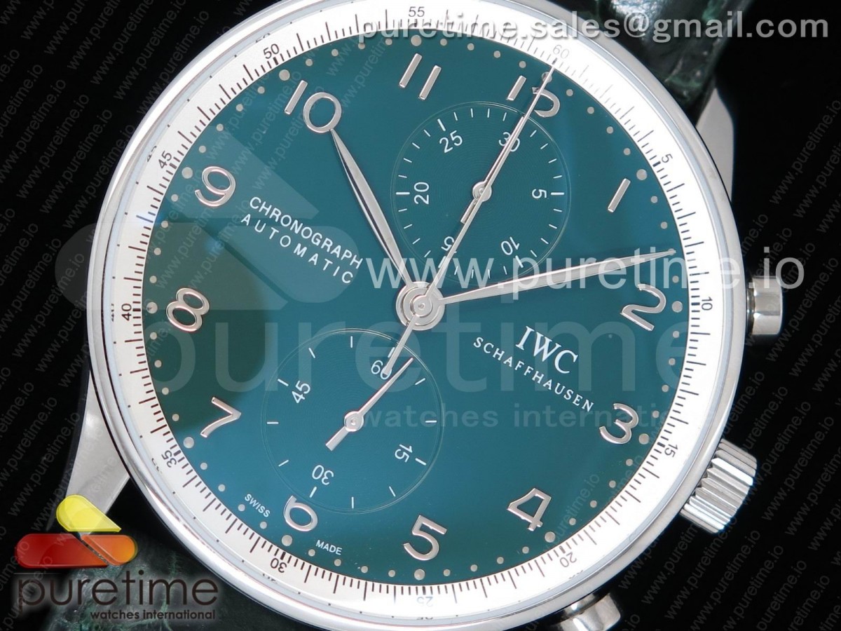 YLF IWC 포르투기저 크로노그래프 150주년 그린다이얼 그린가죽스트랩 Portugieser Chronograph YLF Best Edition “150 Years” IW3716 Green Dial on Green Leather Strap A7750 (Slim Movement)