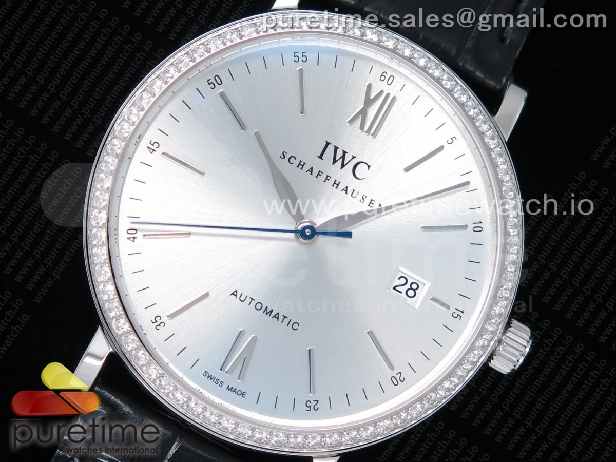 V7F IWC 포르토피노 실버다이얼 다이아베젤 블랙악어가죽스트랩 Portofino Automatic SS V7F 1:1 Best Edtiion Diamonds Bezel Silver Dial SS Markers on Black Croco Strap ETA2892