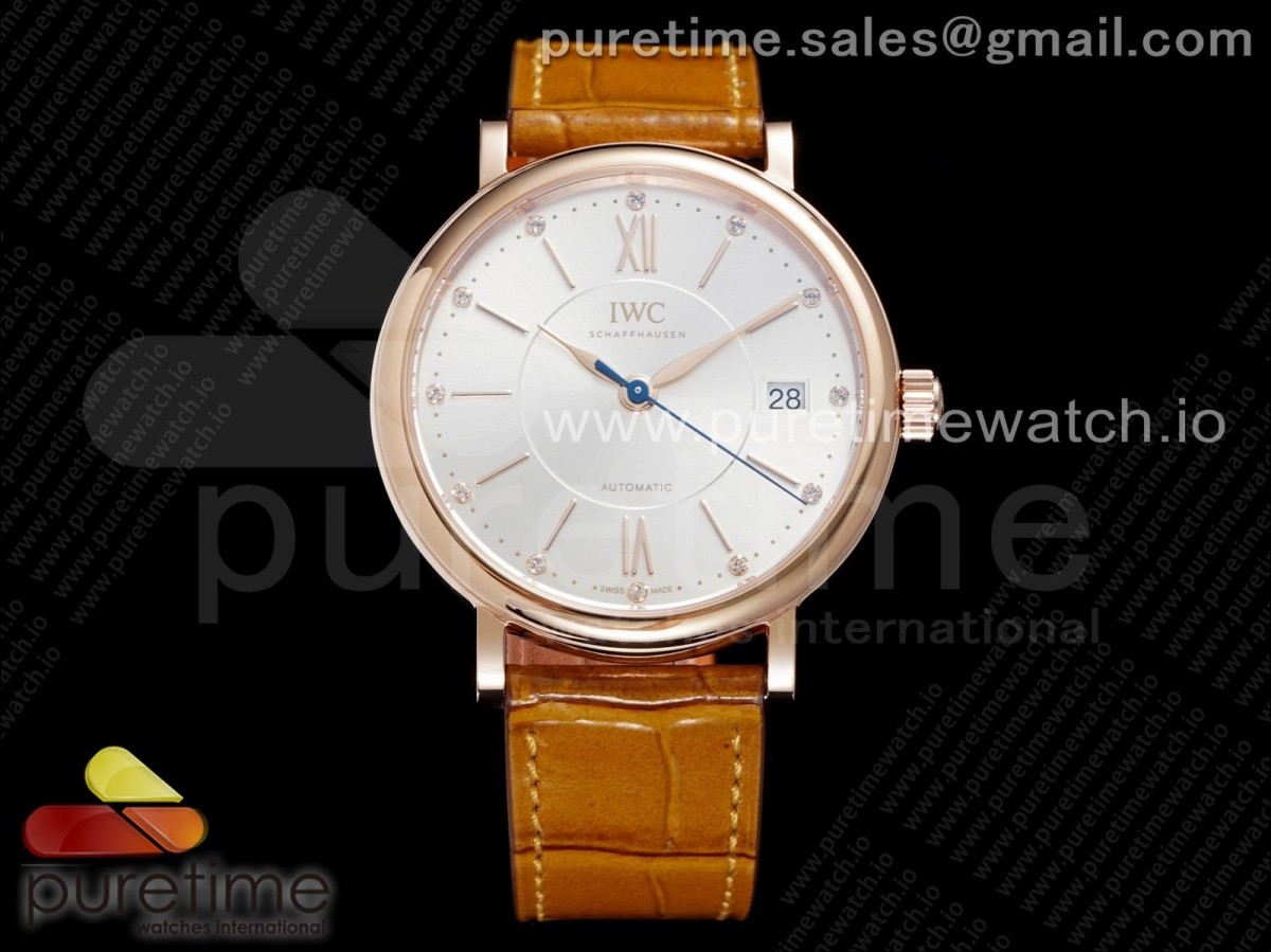 V7F IWC 포르토피노 로즈골드 37미리 화이트다이얼 브라운가죽스트랩 Portofino 37mm RG V7F 1:1 Best Edition White Dial on Light Brown Leather Strap A2892