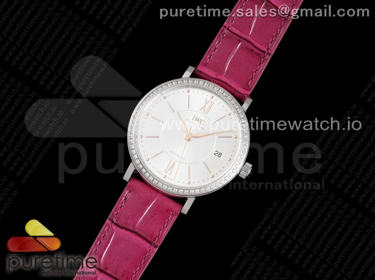 V7F IWC 포르토피노 37미리 화이트다이얼 다이아베젤 핑크가죽스트랩 Portofino 37mm SS V7F 1:1 Best Edition White Dial Diamonds Bezel on Pink Leather Strap A2892
