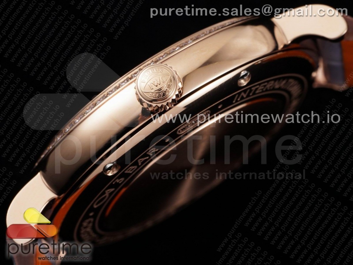 V7F IWC 포르토피노 로즈골드 37미리 실버다이얼 다이아베젤 그레이가죽스트랩 Portofino 37mm RG V7F 1:1 Best Edition Silver Dial Diamonds Bezel on Gray Leather Strap A2892