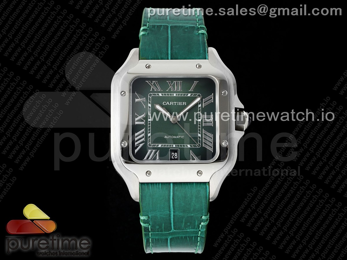 AF 까르띠에 산토스 미듐 35미리 그린다이얼 그린가죽스트랩 Santos de Cartier 35mm SS AF 1:1 Best Edition Green Dial on Green Leather Strap MIYOTA 9015