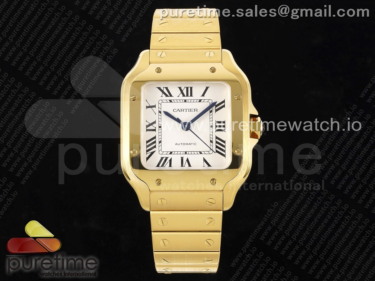 3KF 까르띠에 산토스 미듐 옐로우골드 화이트다이얼 스틸브레이슬릿 Santos de Cartier 35mm YG 3KF 1:1 Best Edition White Dial on YG SmartLinks Bracelet MIYOTA 9015
