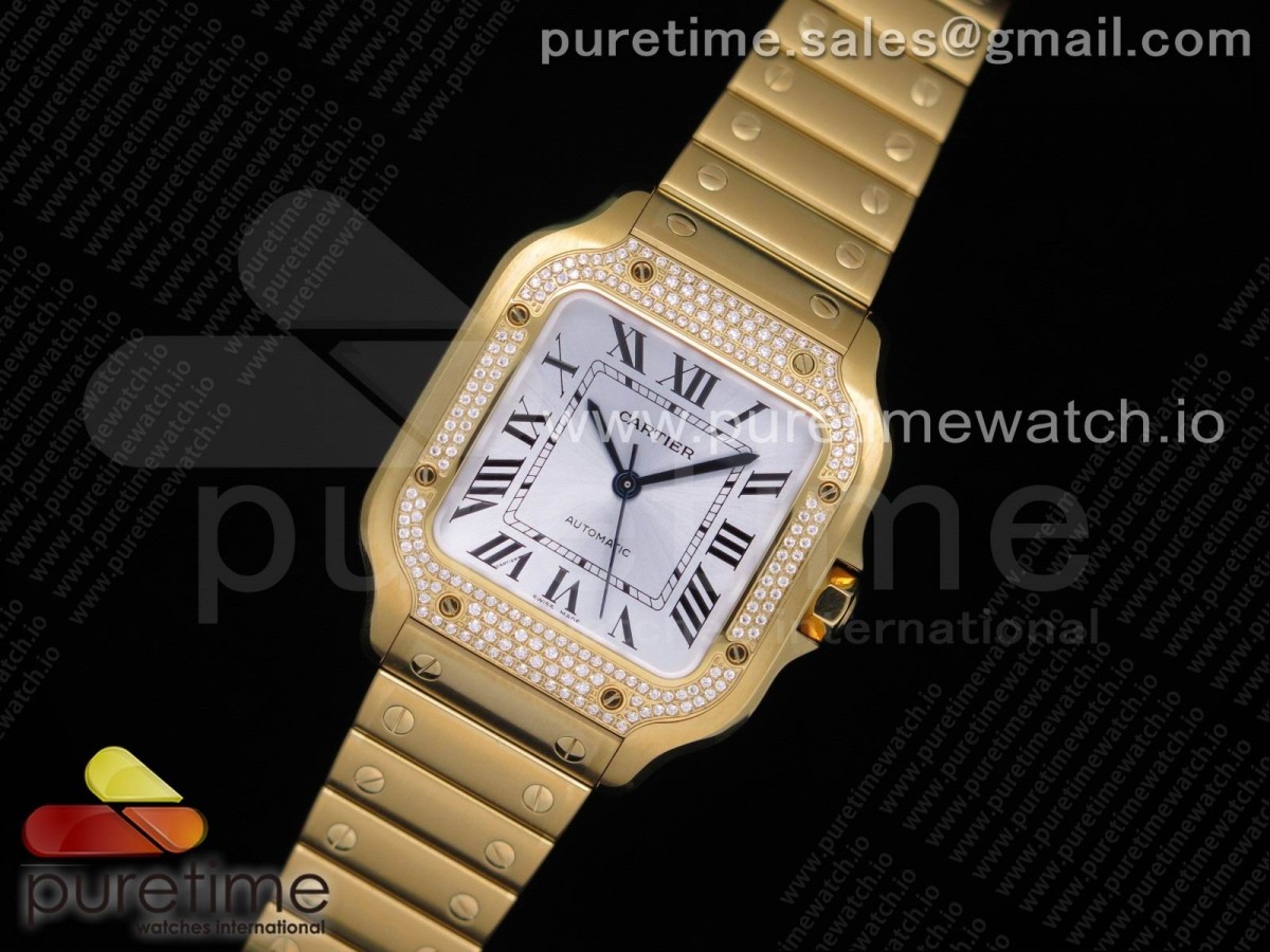 BVF V2 산토스 드 까르띠에 옐로우골드 금통 다이아베젤 미듐 35미리 Santos de Cartier 35mm YG Diamonds Bezel BVF 1:1 Best Edition White Dial on YG SmartLinks Bracelet MIYOTA 9015 V2 > 까르띠에(CARTIER)