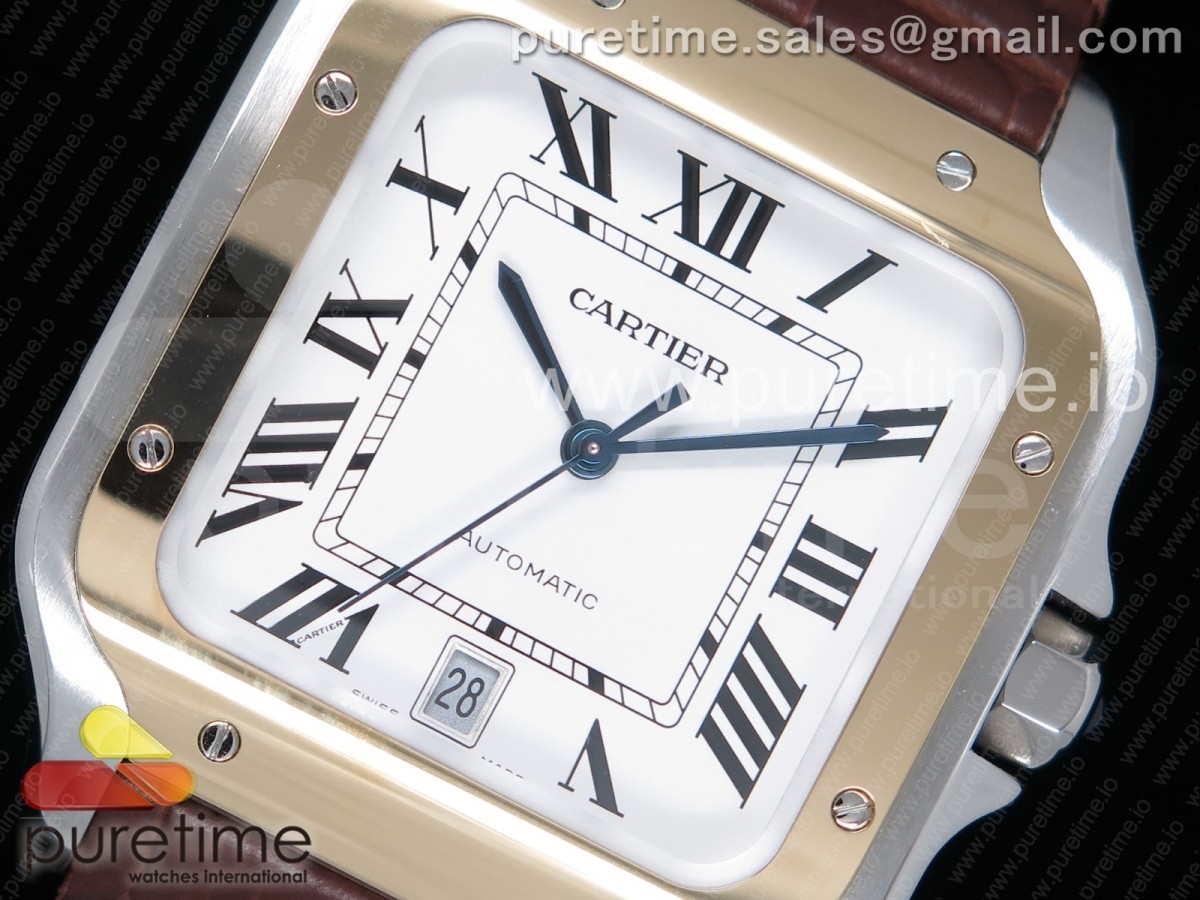 V6F 산토스 드 까르띠에 골드콤비 라지 40미리 가죽스트랩 Santos de Cartier 40mm 2018 V6F 1:1 Best Edition White Dial YG Bezel on Deep Brown Leather Strap MIYOTA 9015 > 까르띠에(CARTIER)