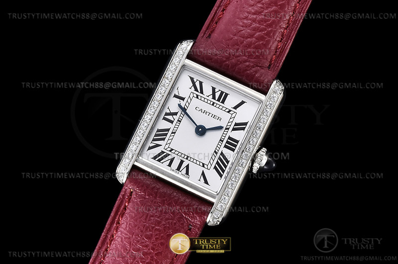 K11F 까르띠에 탱크 머스트 22mm 스몰 다이아베젤 화이트다이얼 와인가죽스트랩 Cartier Tank Must Small Dia Red SS/LE Wht K11 Sw Qtz