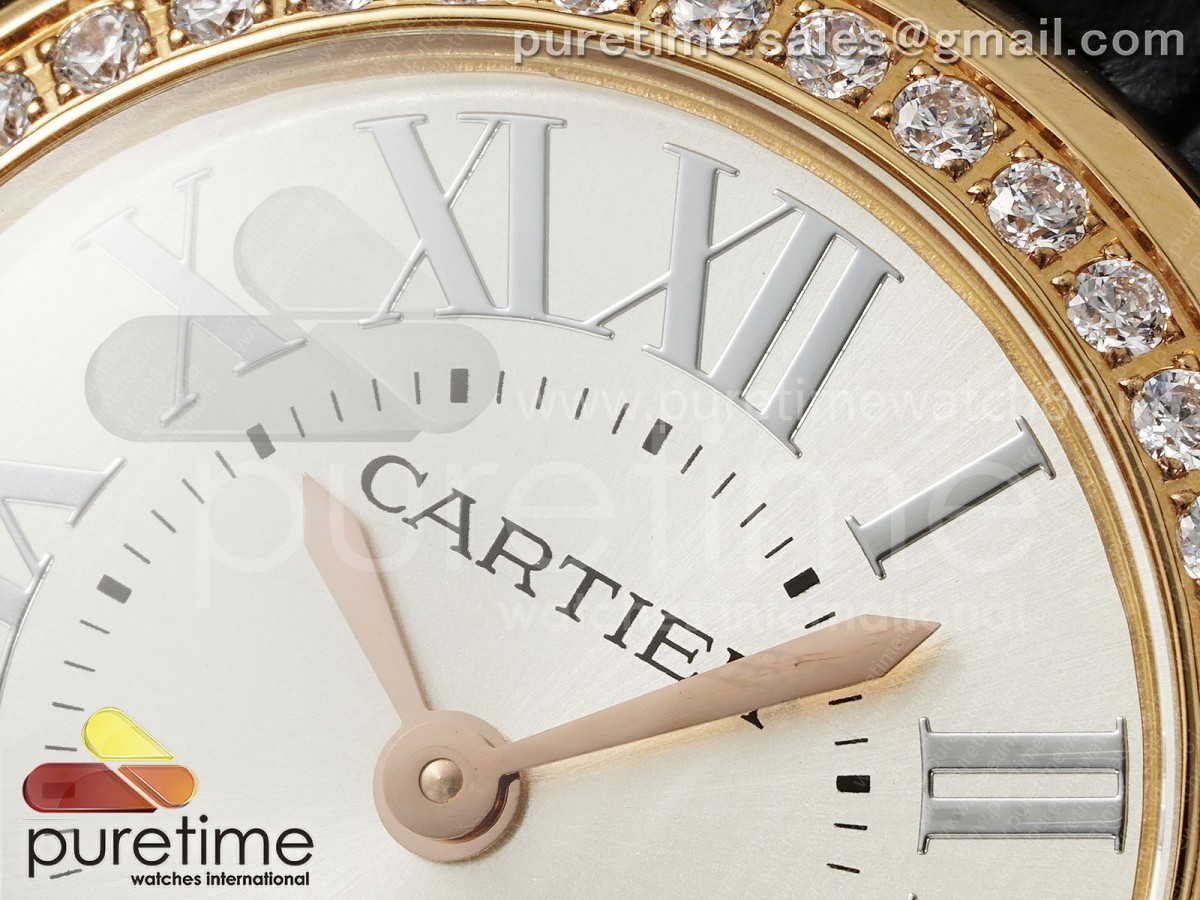 AF 까르띠에 발롱블랑 로즈골드 30미리 다이아베젤 실버다이얼 블랙가죽스트랩 Ballon Blanc 30mm AF 1:1 Best Edition Silver Dial Diamonds Bezel on Blue Fabric Strap Ronda Quartz