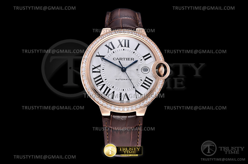 V6F 발롱블루 42미리 화이트다이얼 로즈골드 금통 다이아베젤 브라운 가죽스트랩 Balon Bleu Mens 42mm Diam RG/LE Wht V6F Asia 2824 Mod > 까르띠에(CARTIER)