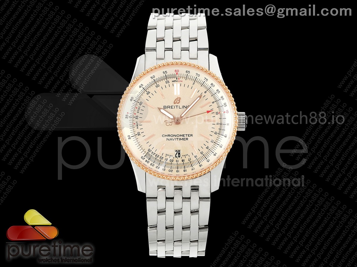 TF 브라이틀링 네이타이머 데이트 38미리 로골베젤 크림다이얼 스틸브레이슬릿 Navitimer 38 Date SS TF 1:1 Best Edition Cream Dial RG Bezel on SS Bracelet A2824