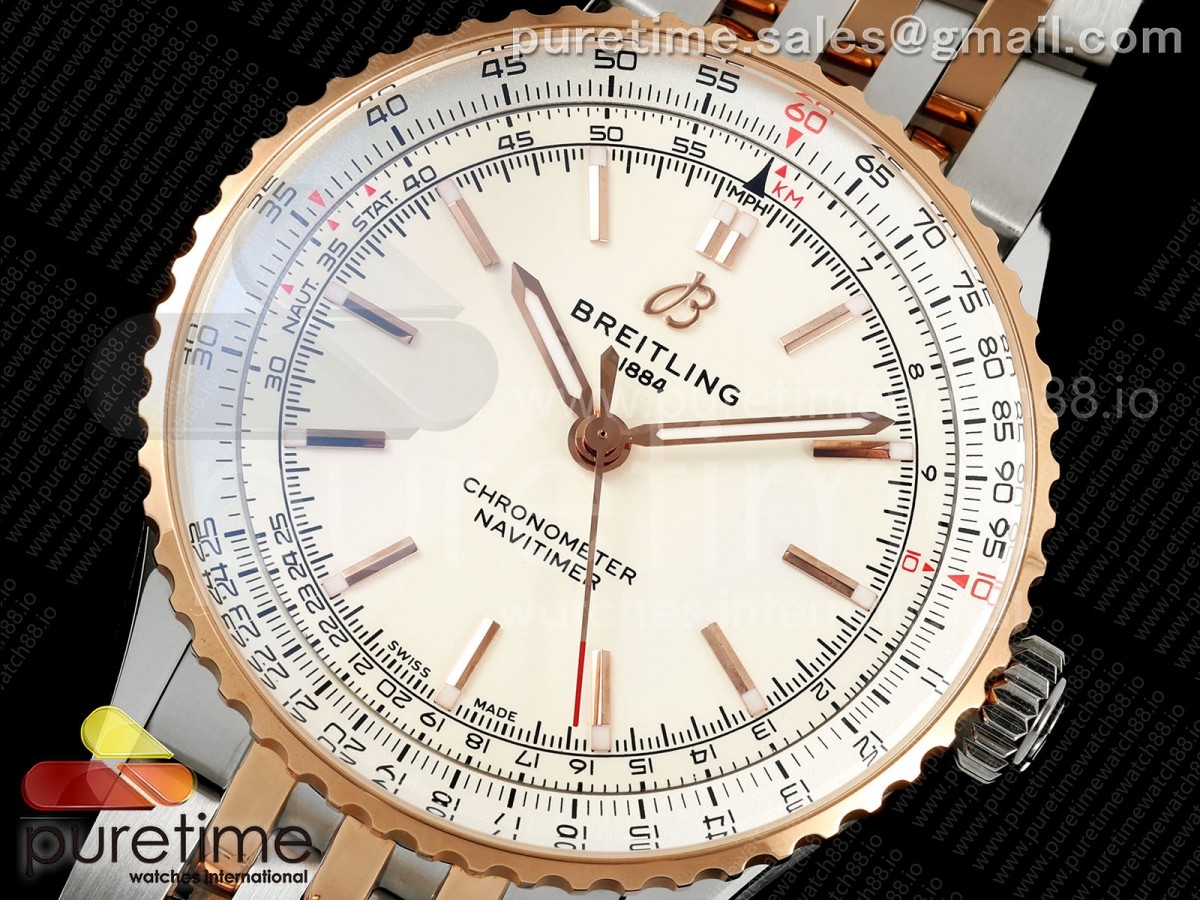 TF 브라이틀링 네이타이머 로즈골드콤비 41미리 화이트다이얼 스틸브레이슬릿 Navitimer 41 SS/RG TF 1:1 Best Edition White Dial on SS/RG Bracelet A2824