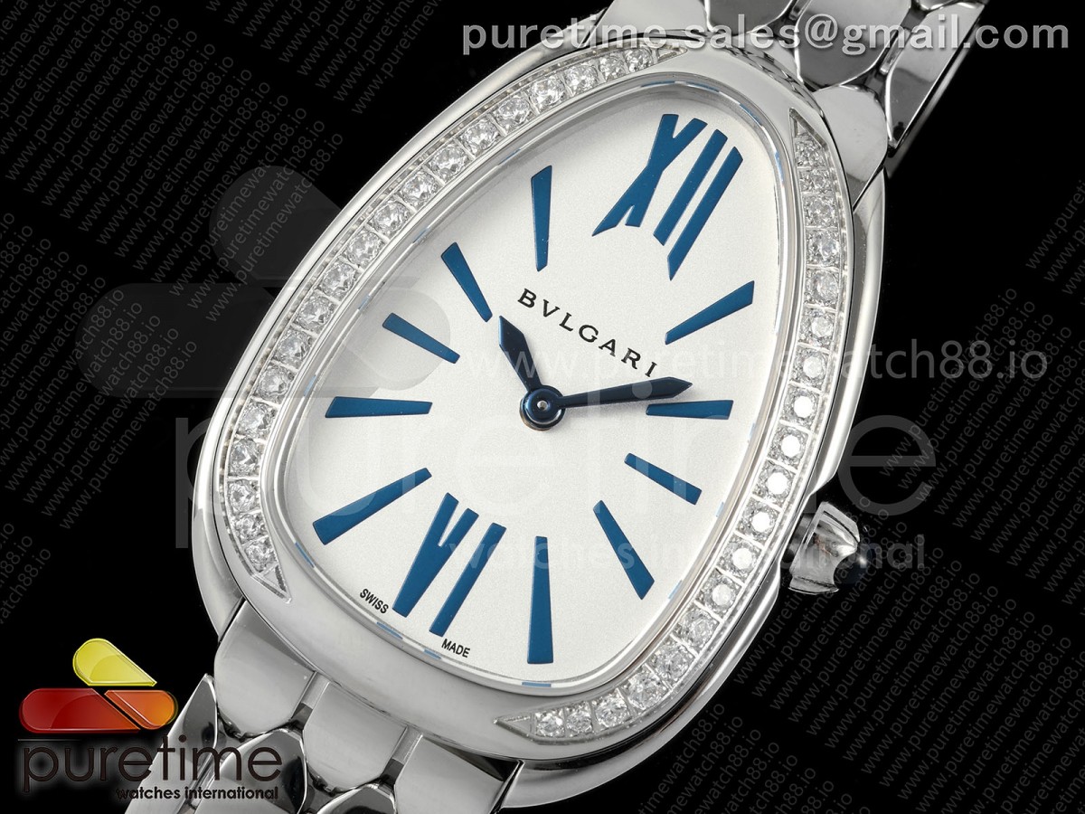 BVF 불가리 세르펜티 세두토리 다이아베젤 화이트/블루다이얼 스틸브레이슬릿 Serpenti Seduttori SS BVF 1:1 Best Edition White/Blue Dial Diamonds Bezel on SS Bracelet ETA Quartz > 불가리(BVLGARI)