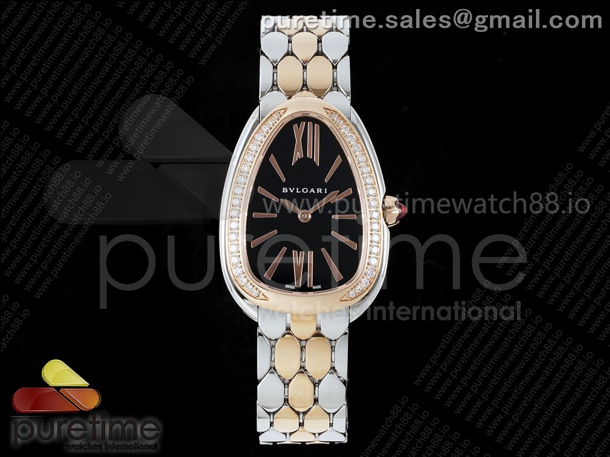 BVF 불가리 세르펜티 세두토리 로즈골드콤비 다이아베젤 블랙다이얼 스틸브레이슬릿 Serpenti Seduttori SS/RG BVF 1:1 Best Edition Black Dial Diamonds Bezel on SS/RG Bracelet ETA Quartz