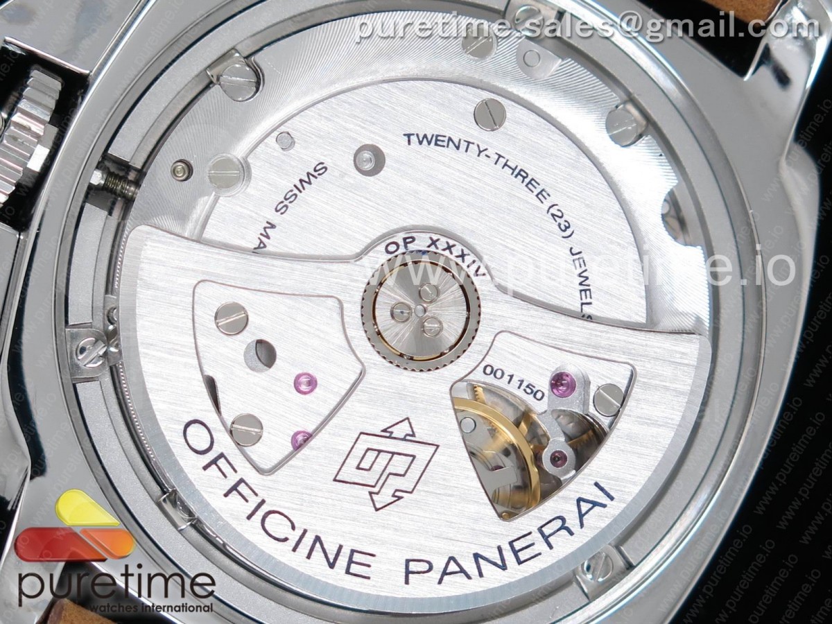 Custom designed Asian automatic movement to match the genuine Panerai OP XXXIV movement at 28800vph