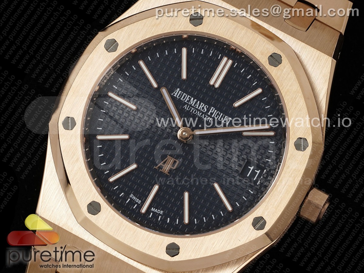 IPF 오데마피게 로얄오크 15202 로즈골드 블랙다이얼 스틸브레이슬릿 Royal Oak 39mm 15202 RG IPF 1:1 Best Edition Blue Textured Dial on RG Bracelet A2121