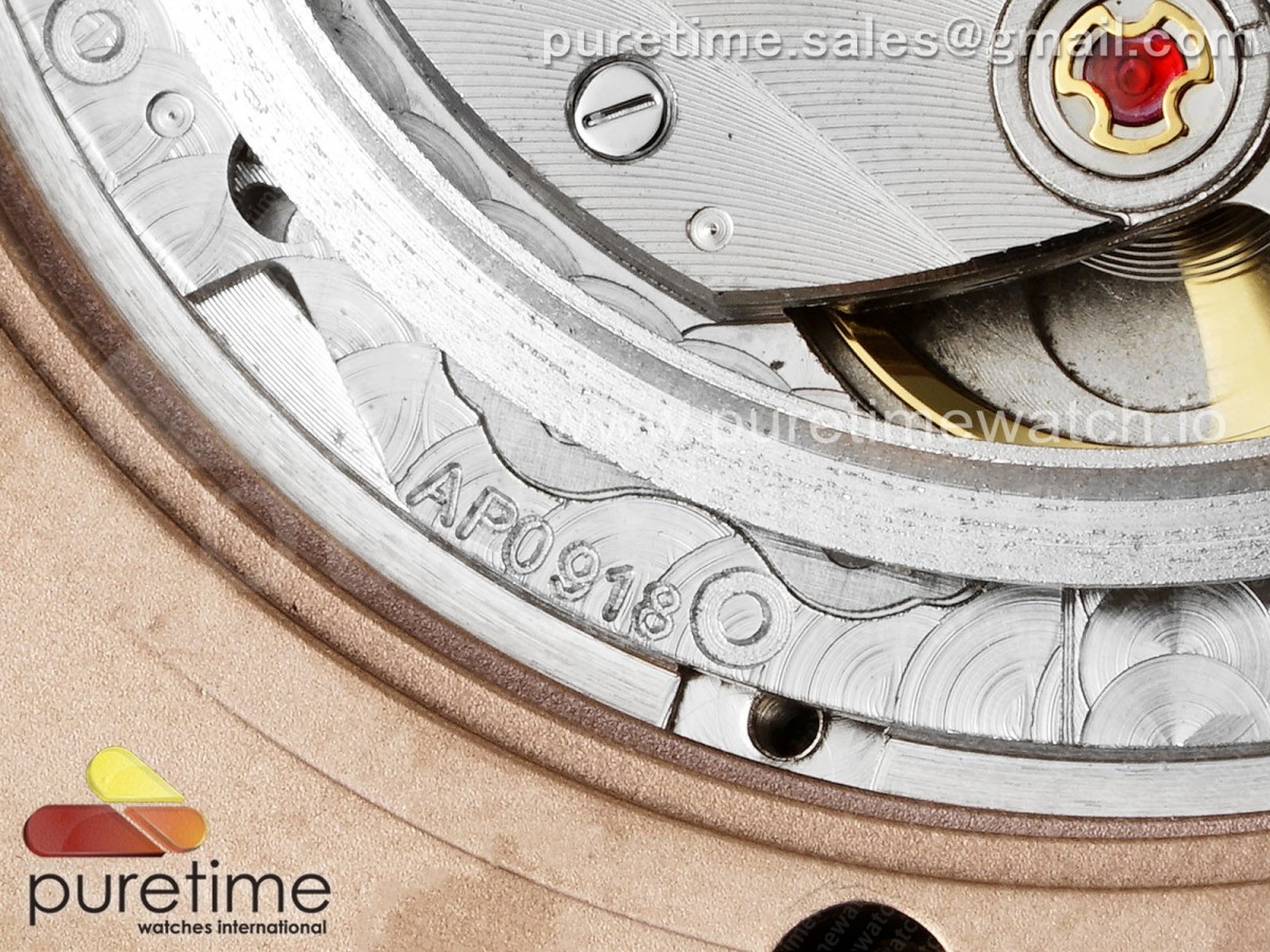 Japanese MIYOTA 9015 24J automatic movement at 28800vph (Same stability as Swiss ETA movements) Decoration: Platinum plated movement plate and rotor which are made according to the genuine movement, the best looking AP Calibre 2121 Movement