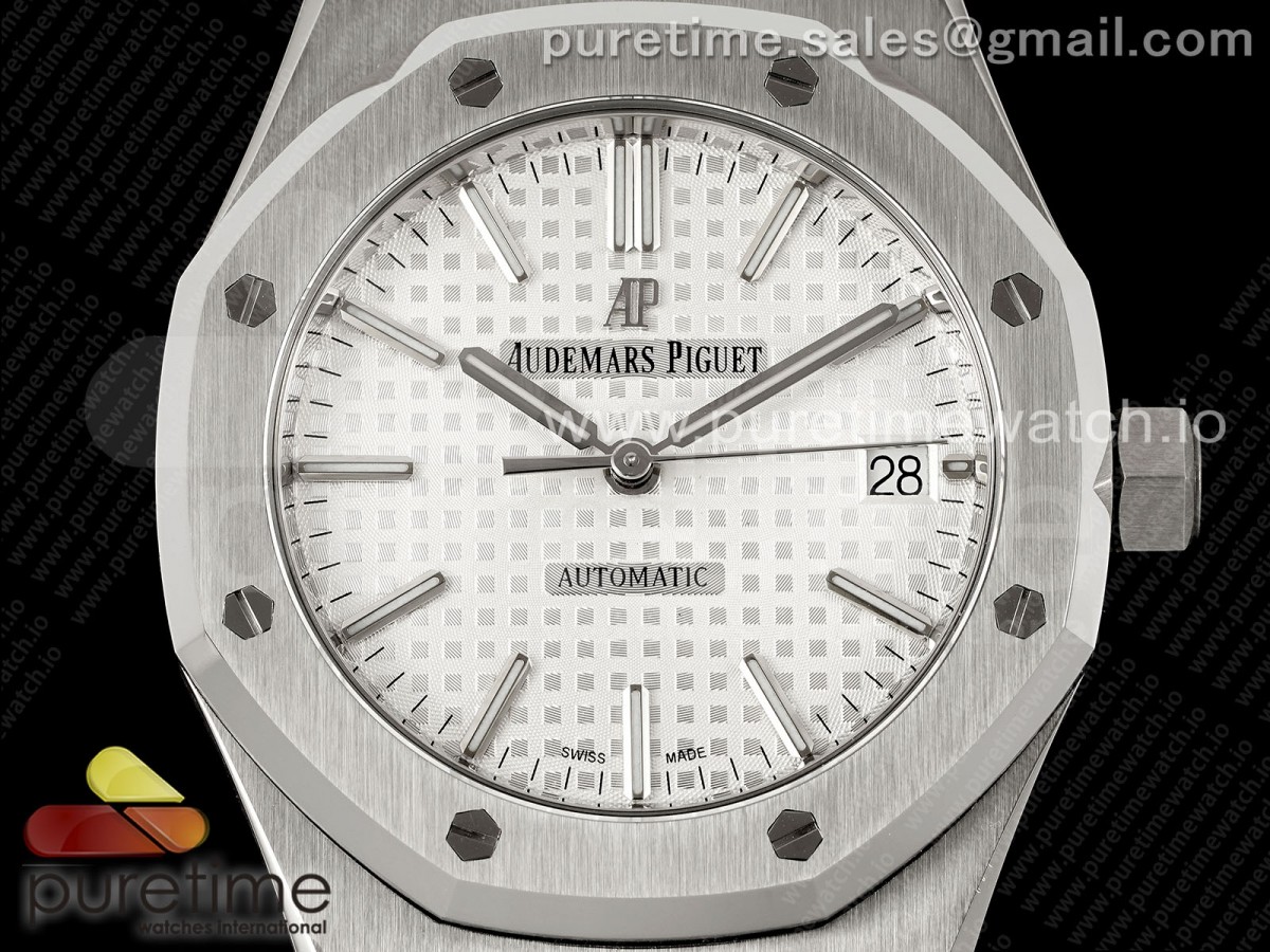 APSF 오데마피게 로얄오크 37미리 15450 화이트텍스쳐다이얼 스틸브레이슬릿 Royal Oak 37mm 15450 SS APSF 1:1 Best Edition White Textured Dial on SS Bracelet SA3120 Super Clone > 오데마피게(AUDEMARS P)