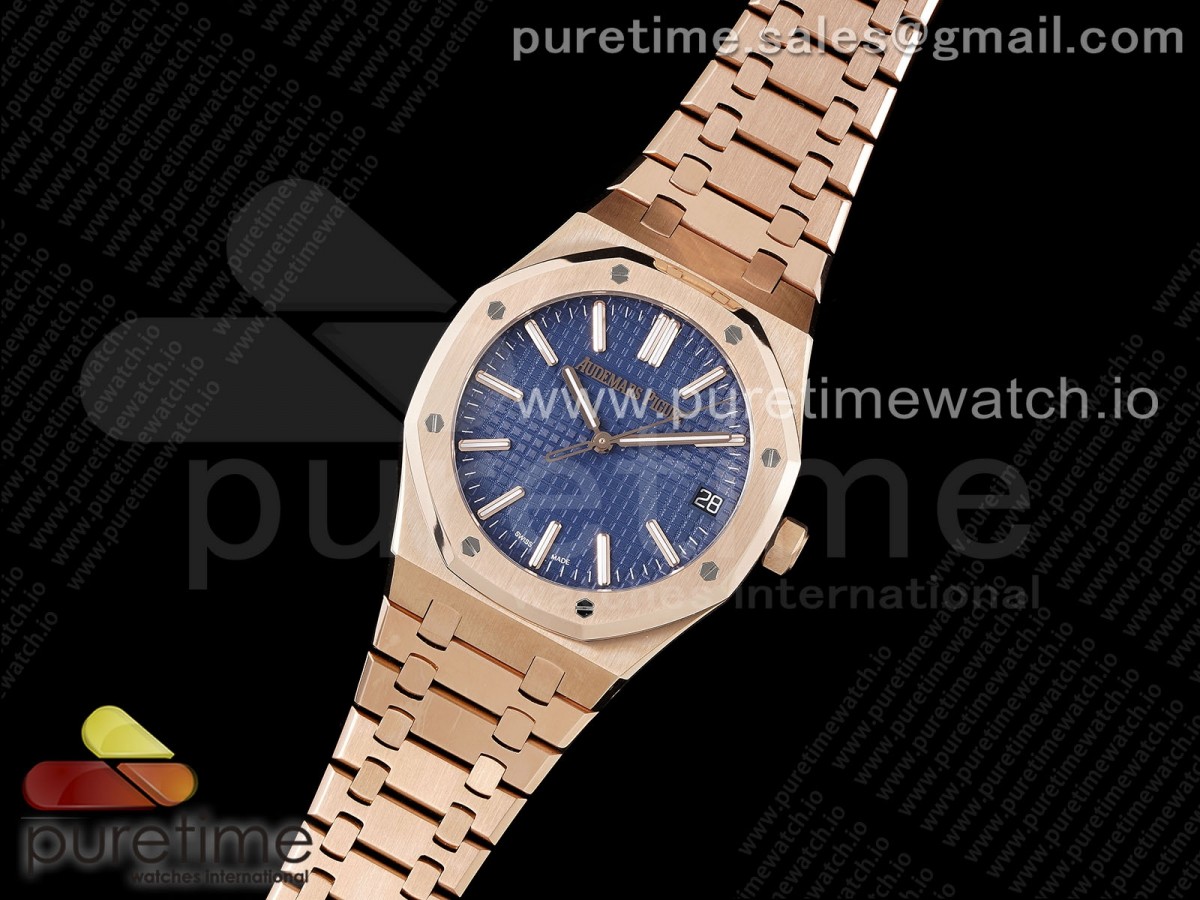 APSF 오데마피게 로얄오크 15510 50주년기념 로즈골드 블루다이얼 스틸브레이슬릿 Royal Oak 41mm 15510 "50th Anniversary" RG APSF 1:1 Best Edition Black Dial on Blue Leather Strap SA4302 Super Clone > 오데마피게(AUDEMARS P)