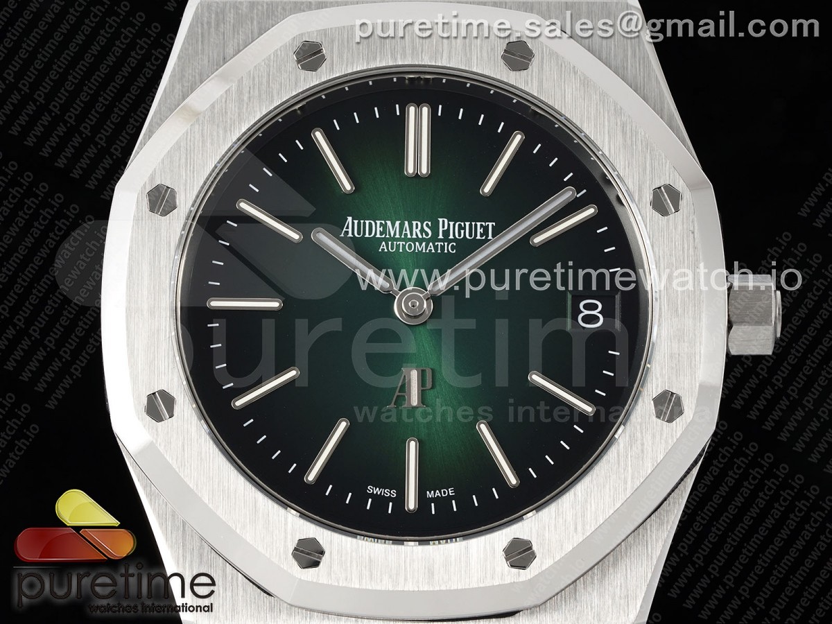 ZF 오데마피게 로얄오크 16202 50주년기념 그린다이얼 스틸브레이슬릿 Royal Oak 39mm 16202 "50th Anniversary" SS ZF 1:1 Best Edition Green Textured Dial on SS Bracelet A7121 > 오데마피게(AUDEMARS P)