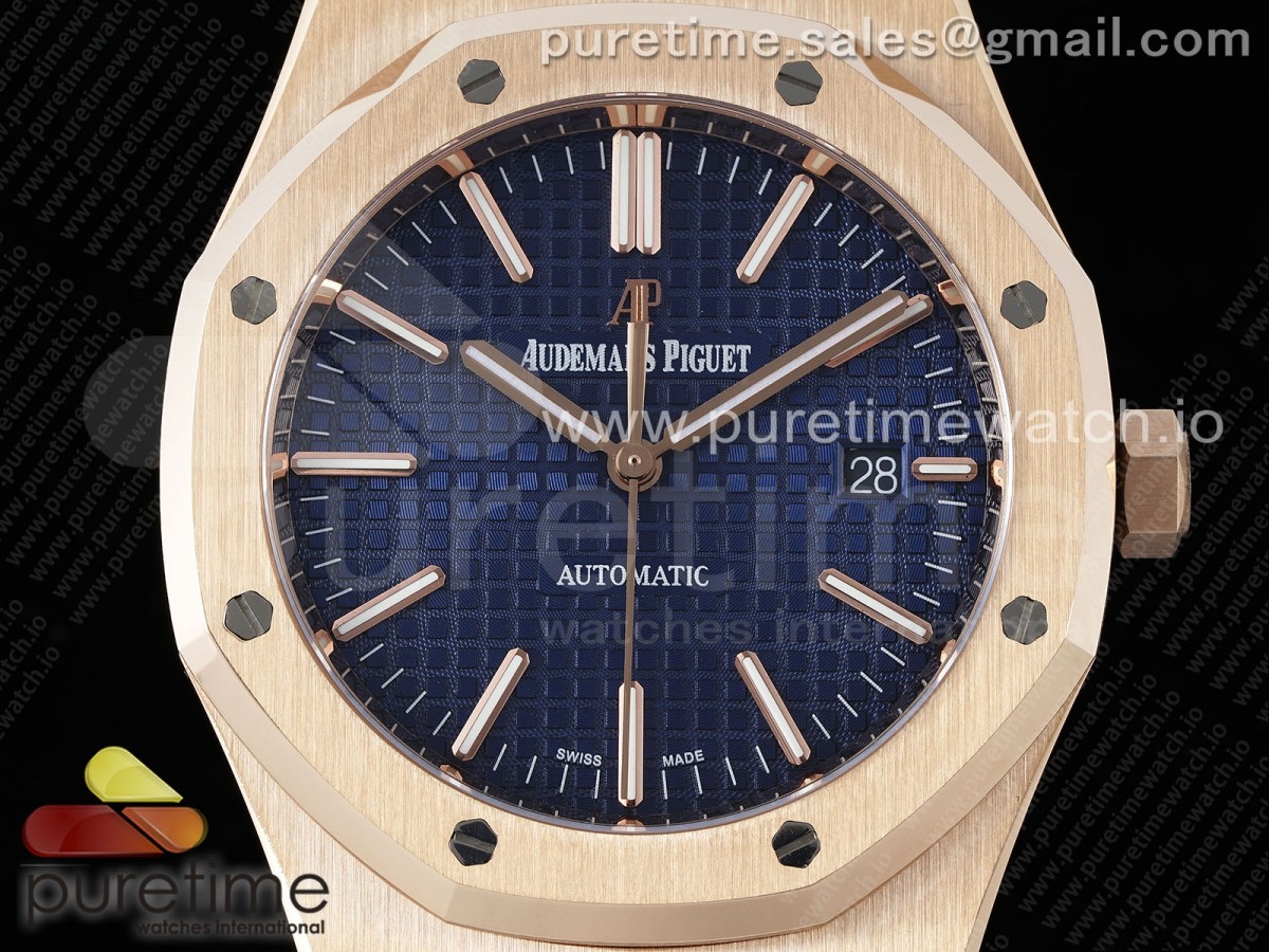 IPF 오데마피게 로얄오크 15400 로즈골드 블루다이얼 스틸브레이슬릿 Royal Oak 41mm 15400 RG IPF 1:1 Best Edition Blue Textured Dial on RG Bracelet SA3120 Super Clone > 오데마피게(AUDEMARS P)