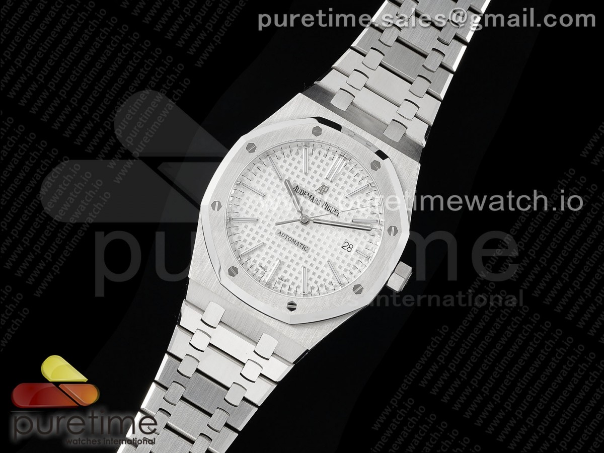 APSF V2 오데마피게 로얄오크 15400 화이트다이얼 스틸브레이슬릿 Royal Oak 41mm 15400 SS APSF 1:1 Best Edition White Textured Dial on SS Bracelet A3120 Super Clone > 오데마피게(AUDEMARS P)