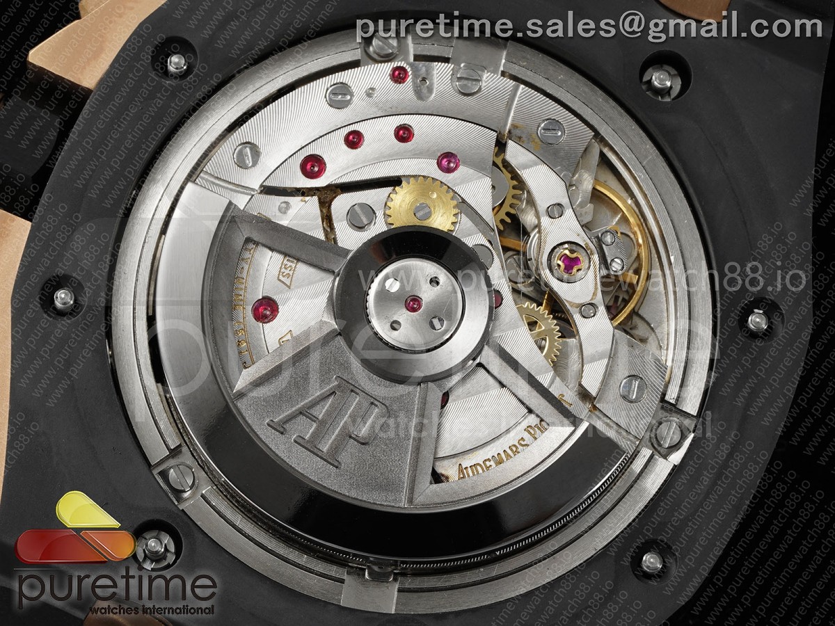 Base Movement: Asian 7750 automatic chronograph movement at 28800vph; Decoration: Platinum plated movement plate and rotor which are made according to the genuine movement, the best looking AP Calibre 3126 Movement Clone at the moment.