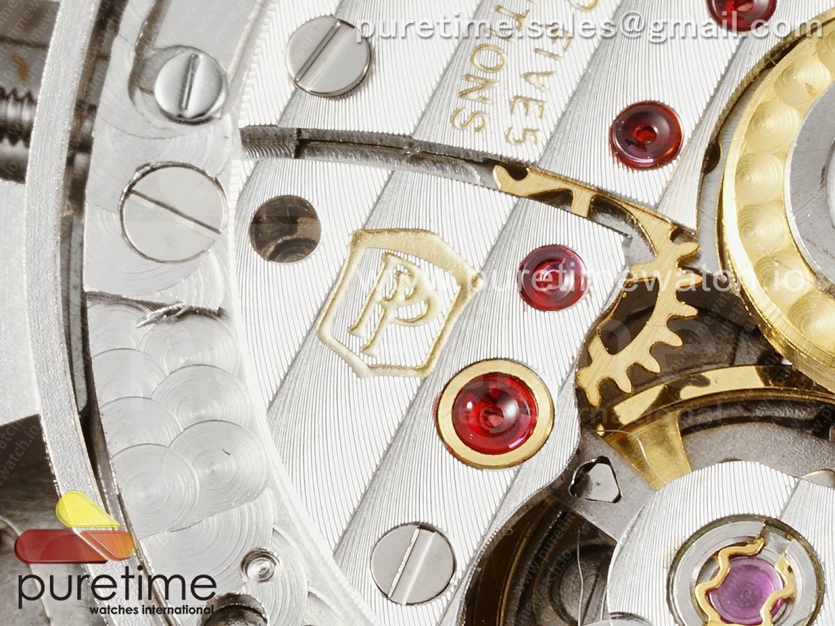 Japanese Miyota 9015 Automatic at 28800vph Decoration: Platinum plated movement plate and rotor which is made according to the genuine movement, the best looking PP324CS Movement