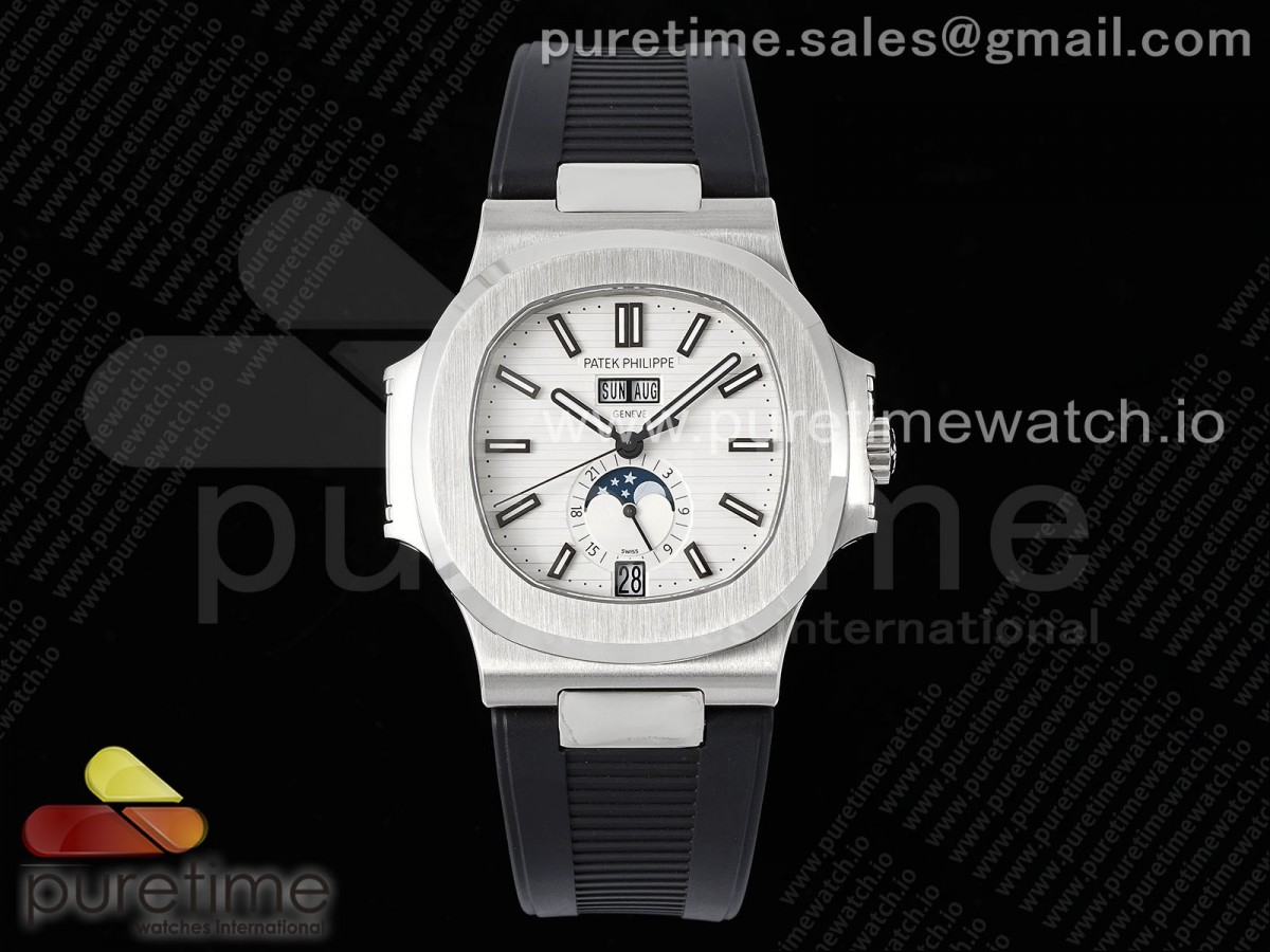 PPF 파텍필립 노틸러스 5726 화이트다이얼 블랙러버스트랩 Nautilus 5726 Complicated SS PPF 1:1 Best Edition White Textured Dial on Black Rubber Strap A324 > 파텍필립(PATEKPHILIPPE)