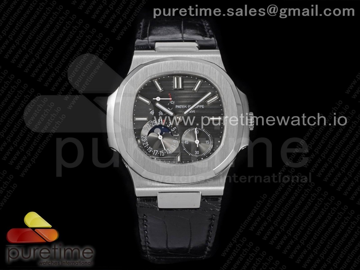 PF 파텍필립 노틸러스5712 그레이다이얼 블랙가죽스트랩 Nautilus 5712 SS PF Best Edition Gray Dial on Black Leather Strap A23J