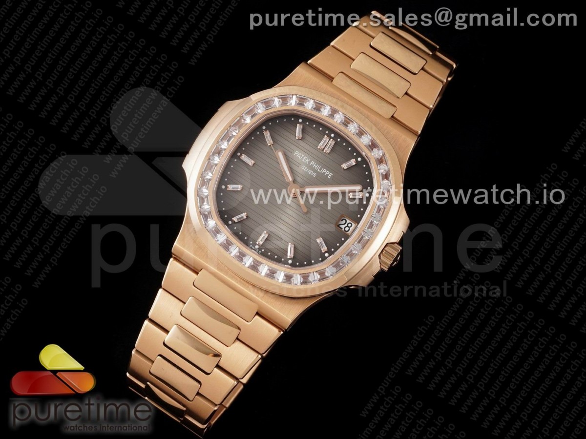 PPF V4 파텍필립 노틸러스5711 로즈골드 브라운그레이다이얼 다이아베젤,인덱스 스틸브레이슬릿 Nautilus 5711 RG PPF 1:1 Best Edition Brown Dial Diamonds Markers and Bezel on RG Bracelet 324CS (Free box) V3