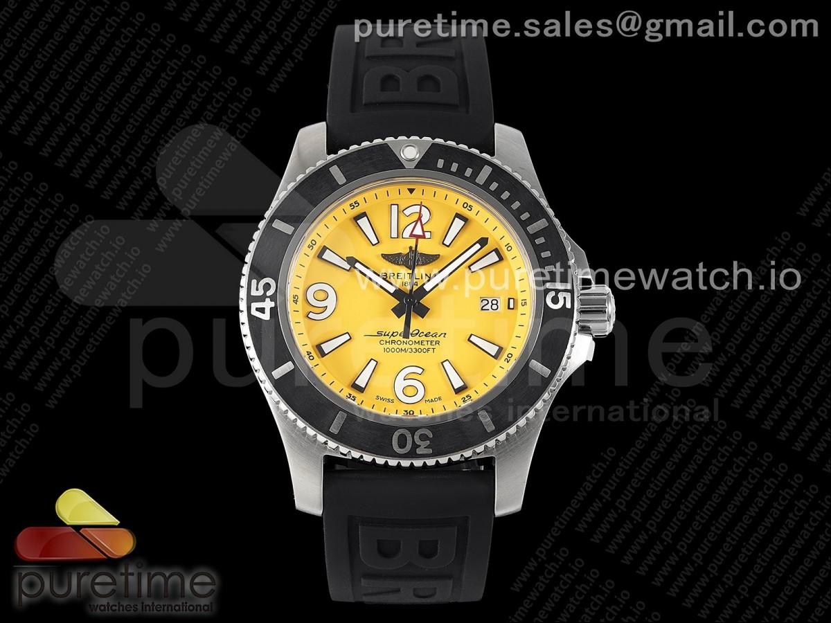 TF 브라이틀링 슈퍼오션 오토매틱 옐로우다이얼 블랙러버스트랩 Superocean Automatic 44 TF 1:1 Best Edition Yellow Dial Black Bezel on Black Rubber Strap A2824