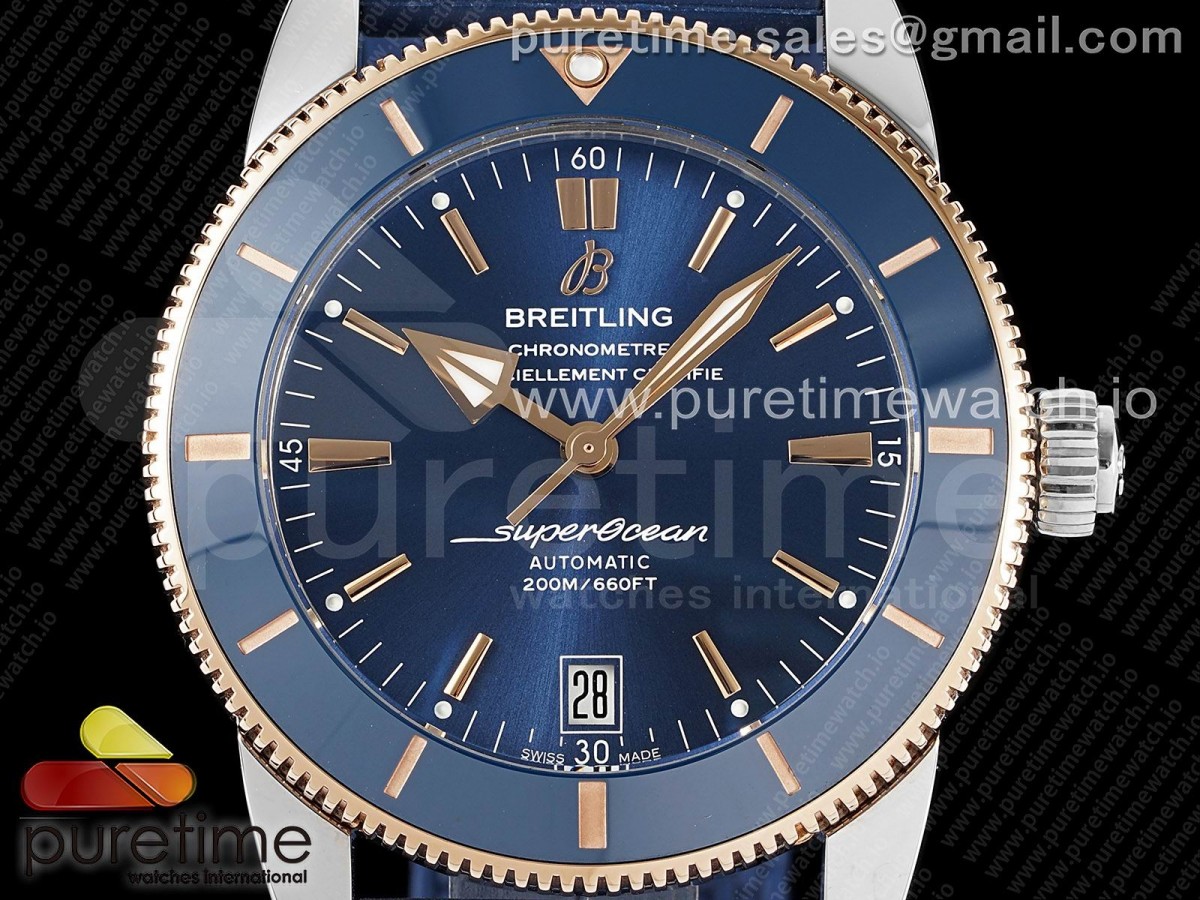 GF V2 브라이틀링 슈퍼오션 헤리티지 로즈골드콤비 블루다이얼 블루러버스트랩 SuperOcean Heritage ii 42mm SS/RG GF 1:1 Best Edition Blue Dial on Blue Rubber Strap A2824 V2