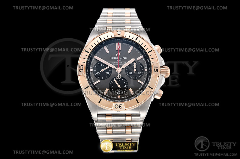 GF 브라이틀링 크로노맷 B01 로즈골드콤비 그레이다이얼 스틸브레이슬릿 BSW0459C - Chronomat B01 RG/SS Grey/Stk GF Asia 7750