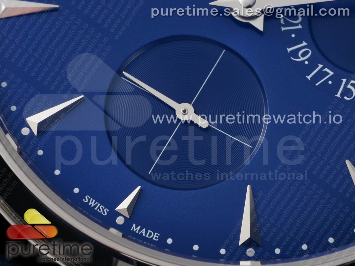 ZF V3 예거 마스터 울트라씬 마르쉐 블루다이얼 블루가죽스트랩 Master Ultra Thin Réserve de Marche SS ZF 1:1 Best Edition Blue Dial on Blue Leather Strap SA938 V3 > 예거(JAEGER LE COULTRE)