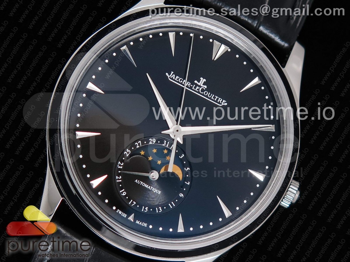 ZF 예거 마스터 울트라씬문 블랙다이얼 블랙가죽스트랩 Master Ultra Thin Moon 1368470 SS ZF 1:1 Best Edition Black Dial on Black Leather Strap A925 > 예거(JAEGER LE COULTRE)