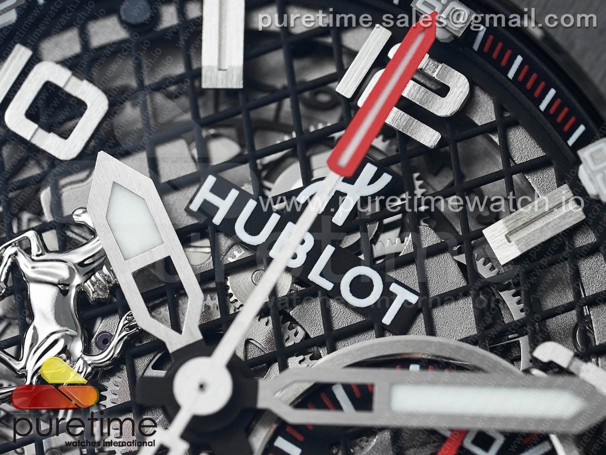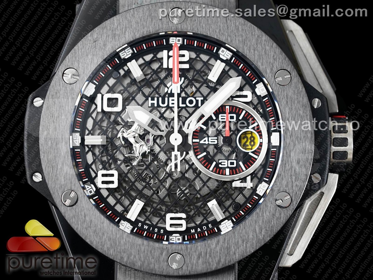 V6F 위블로 빙뱅 페라리 유니코 45미리 세라믹케이스 스켈레톤다이얼 그레이거미스트랩 Big Bang Ferrari Unico Black Ceramic V6F Best Edition Net Skeleton Dial on Gray Gummy Strap HUB1288 > 위블로(HUBLOT)