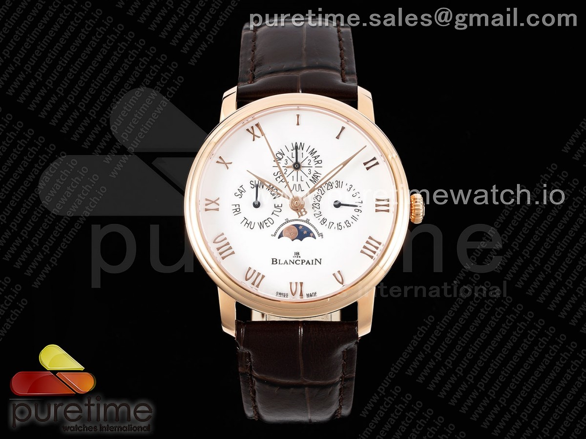 HRF 블랑팡 빌레렛 콴팀 퍼페츄얼 로즈골드 화이트다이얼 브라운가죽스트랩 Villeret Quantieme Perpetuel 6656 RG HRF Best Edition White Dial on Brown Leather Strap A5954 > 블랑팡(BLANCPAIN)
