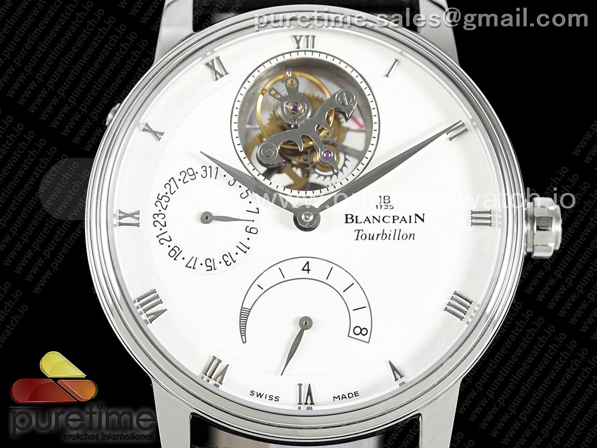 JBF V2 블랑팡 빌예레 뚜르비옹 화이트다이얼 블랙가죽스트랩 Villeret Tourbillon SS Real PR JBF Best Edition White Dial on Black Leather Strap V2 > 블랑팡(BLANCPAIN)