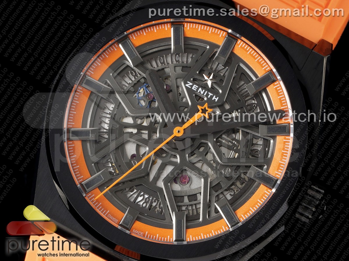 LF V2 제니스 데피 클래식 PVD 오렌지스켈레톤다이얼 오렌지러버스트랩 Defy Classic PVD LF 1:1 Best Edition Skeleton Orange Dial on Orange Rubber Strap A2892 V2 > 제니스(ZENITH)