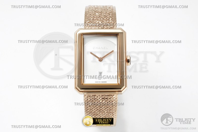 BVF 샤넬 보이프렌드 로즈골드 화이트다이얼 트위드브레이슬릿 Chanel Boyfriend Tweed RG/RG Wht BVF Sw Qtz