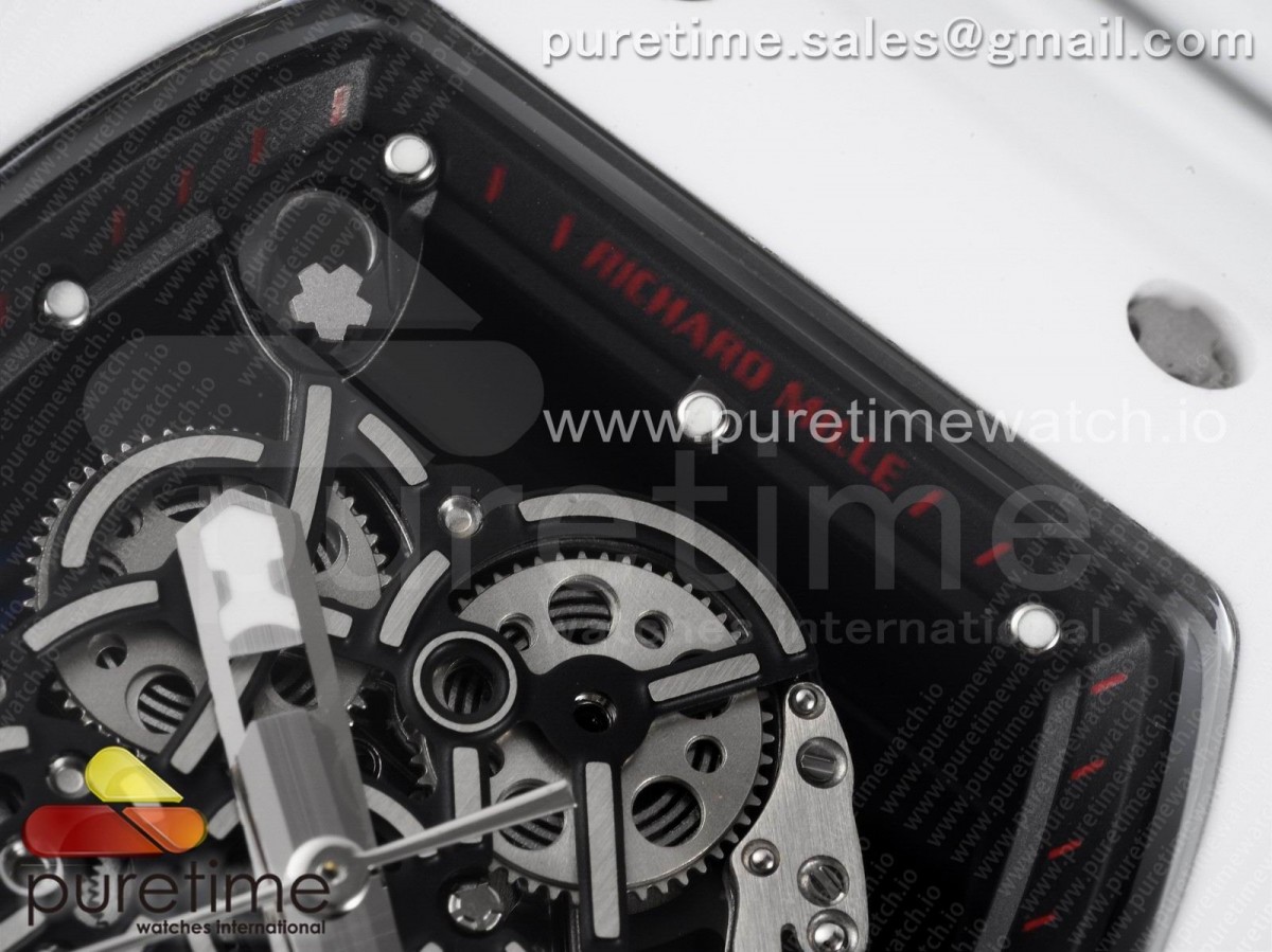 KVF V3 리차드밀 RM055 화이트블랙세라믹 블랙스켈레톤다이얼 화이트러버스트랩 RM055 White Ceramic KVF Best Edition Skeleton Dial Black Case on White Rubber Strap MIYOTA8215 V3 > 리차드밀(RICHARD MILLE)