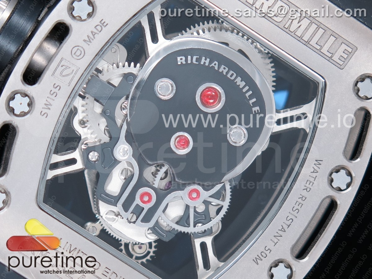EURF 리차드밀 RM052 티타늄 리얼 투어빌론 스켈레톤스컬다이얼 블랙러버스트랩 RM052 Titanium Real Tourbillon EURF Best Edition Skeleton Skull Dial on Black Rubber Strap