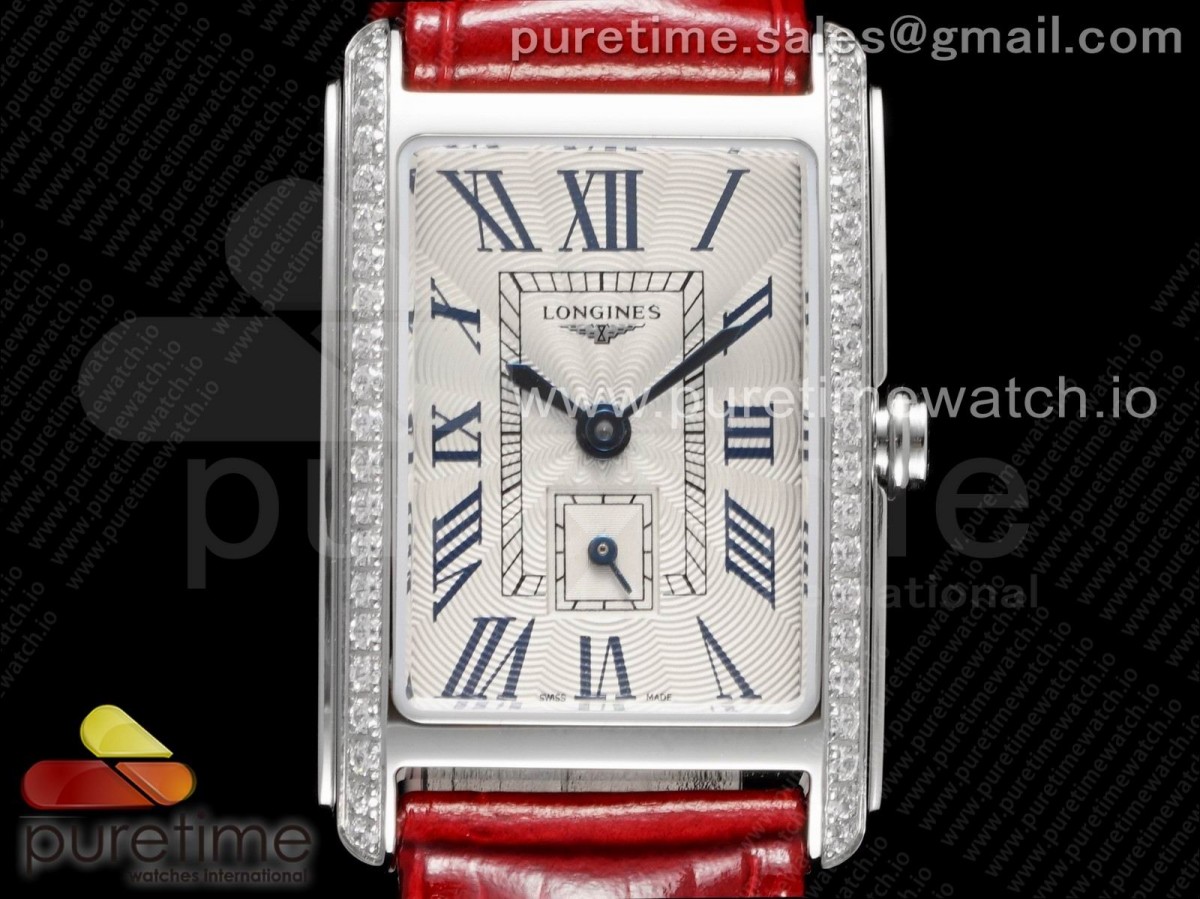 8848F 론진 돌체비타 23미리 화이트다이얼 다이아베젤 레드악어가죽스트랩 DolceVita 23mm Ladies Watch 8848F 1:1 Best Edition White Dial Diamonds Bezel on Red Croco Strap Swiss Quartz