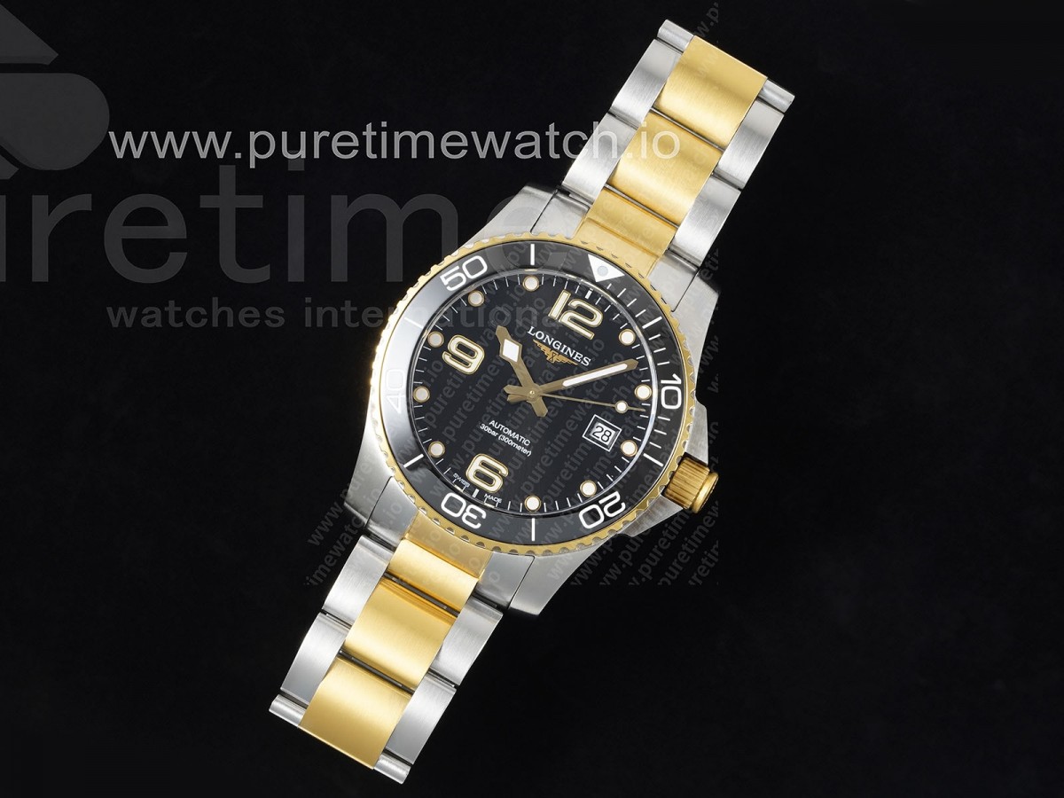 ZF 론진 하이드로 콘퀘스트 옐로우골드콤비 그린다이얼 스틸브레이슬릿 Conquest SS/YG Black Ceramic Bezel SS ZF 1:1 Best Edition Black Dial on SS/YG Bracelet A2824
